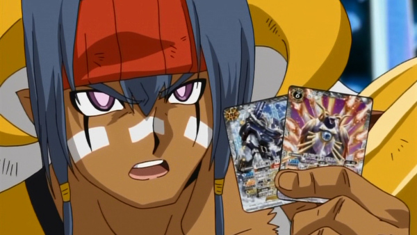 駿太とヨク達 の前 に、白 の十二神皇2枚 を手 にしたイオが立 ち塞 がる。