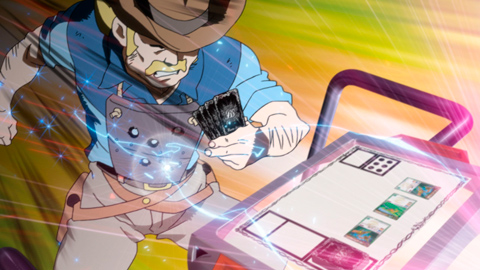 リボルバーはダンの波状攻撃に感心するも、ダンの好きなカレーと一緒で赤くて辛いだけで深みがない!と批判をする。そしてフラッシュタイミングでアメンボーグを召喚する。緑属性にのみ与えられた能力「神速」だ。次々とフラッシュタイミングにスピリットを召喚し、神速コンボを繰り広げるリボルバー。その強さに歯噛みずるダンだが、マジック「ヴィクトリーファイア」でリボルバーの攻撃をしのぎ、雷皇龍ジークヴルムを召喚する。そして畳み掛けるように攻撃を続け、ついにリボルバーに勝利した。リボルバーはズングリーが祠で見つけたジークフリードのカードをダンに渡して荒野を去っていく。ダンはズングリーに素直に謝り、ズングリーのカレーを食べてあげる。ところが、そのおいしさに驚く。マギサはダンが一晩中つきっきりで煮込んでいたからではないかという。感激したズングリーは、これからもダンにおいしいカレーを作るとダンに抱きつくのだった。