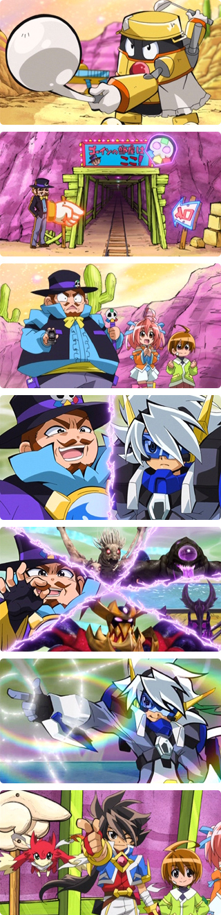 惑星ガンロックにいたもう一人の銀河七将、ゴリ押しのゴーインはクリスタルを採掘する鉱山に町の子供の父親を連れ去り強制労働をさせていた。
