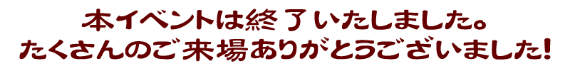 - ・販売当日は大変混雑が予想されます。周囲の方のご迷惑になるような行為はご遠慮ください。会場では、スタッフの指示にしたがっていただきますようお願いいたします。ご対応いただけない場合は、参加をご遠慮いただく場合がございます。