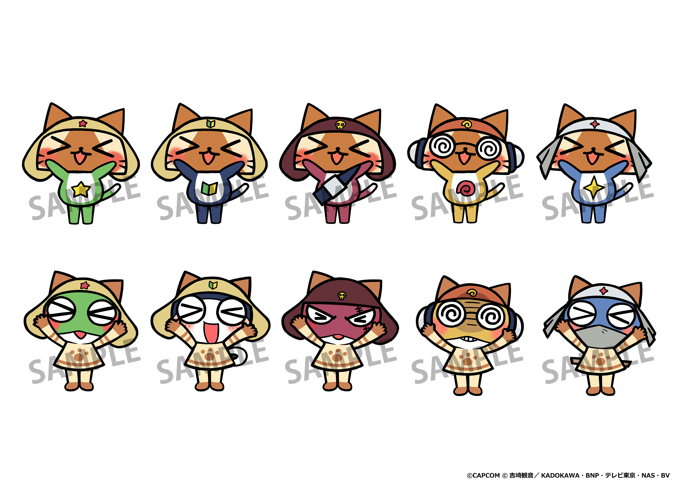 「ケロロアイルー」「タママアイルー」「ギロロアイルー」「クルルアイルー」「ドロロアイルー」「ケロロ」「タママ」「ギロロ」「クルル」「ドロロ」が