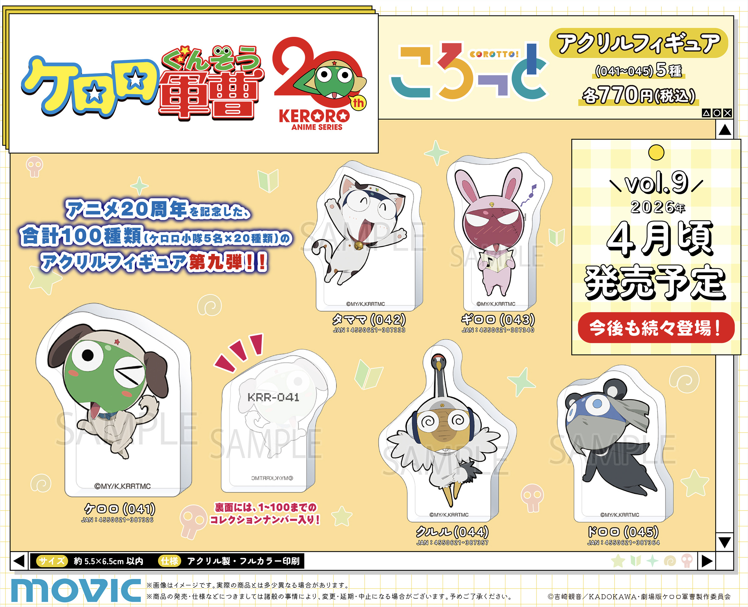 『ケロロ軍曹』アニメ放送20周年を記念して、 合計100種類(ケロロ小隊5名×20種類)のアクリルフィギュアが「ころっと」が好評発売中!!