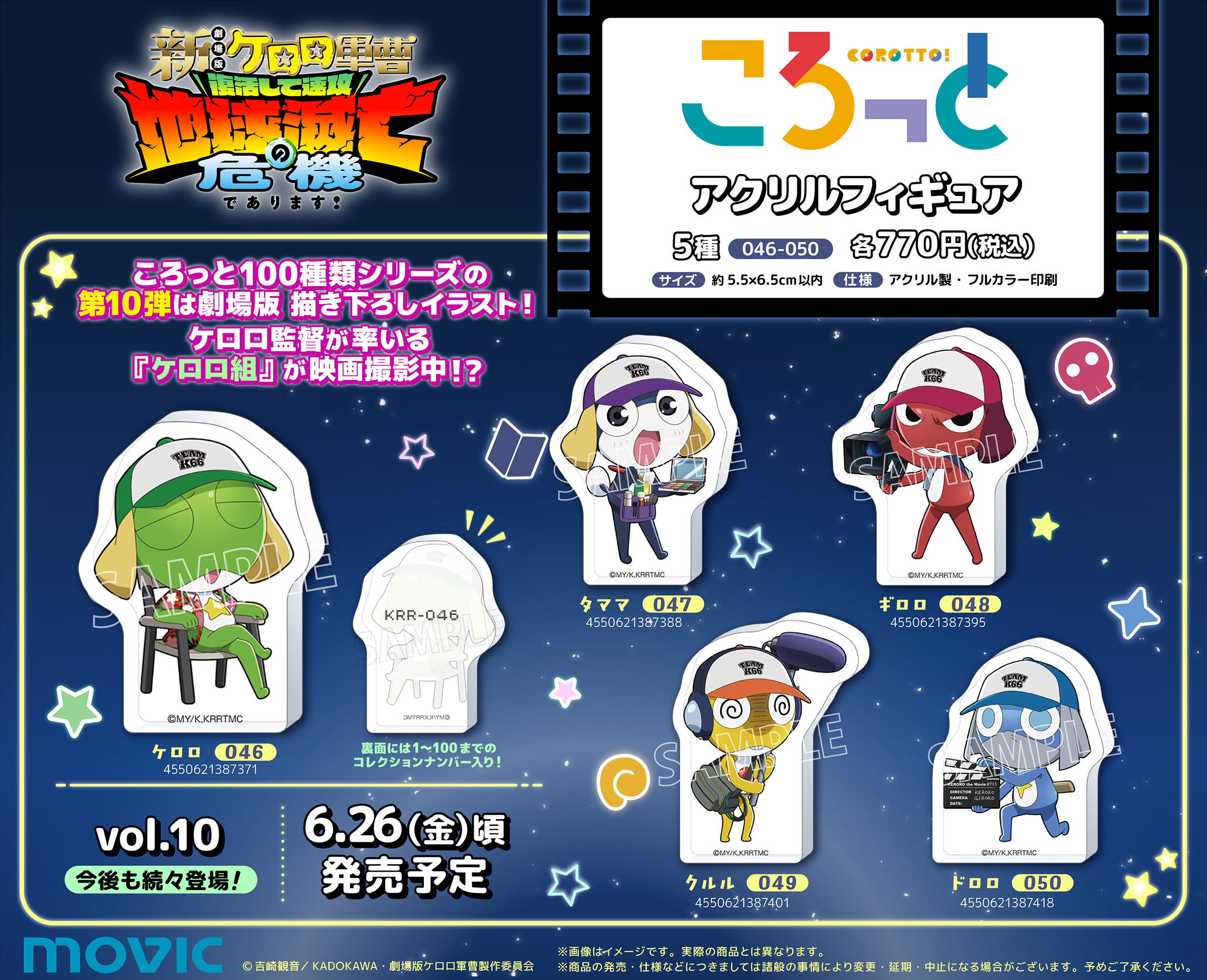 『ケロロ軍曹』アクリルフィギュア「ころっと」が好評発売中!! 第10弾は劇場版の公開を記念し、映画制作チームになりきったケロロ小隊の 特別描き下ろしイラスト使用です!