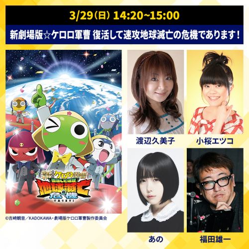ケロロ軍曹役の渡辺久美子さんをはじめ、豪華メンバーによるトークは見逃せません!