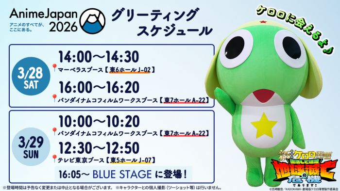 AnimeJapan 2026では、体験・ステージ・グリーティングと盛りだくさんのケロロ企画を展開!